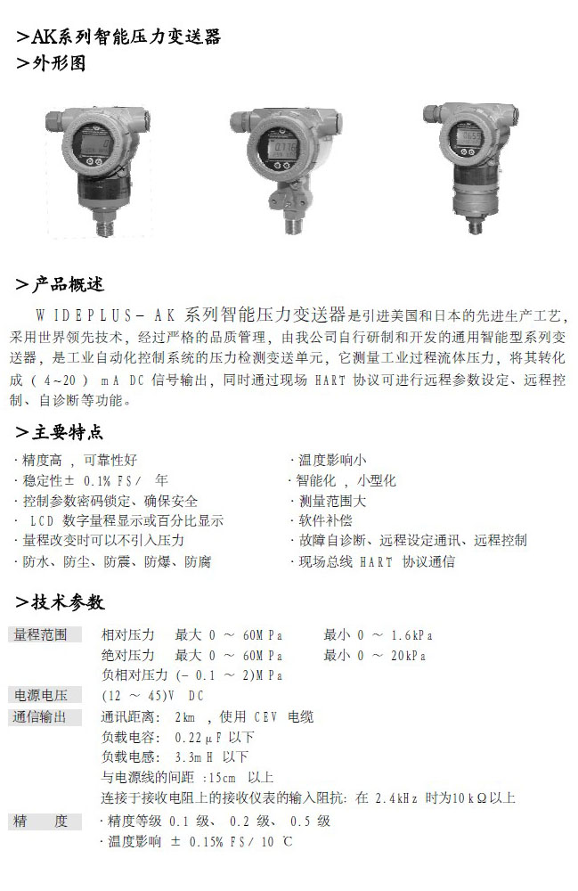 K1、AK系列壓力變送器