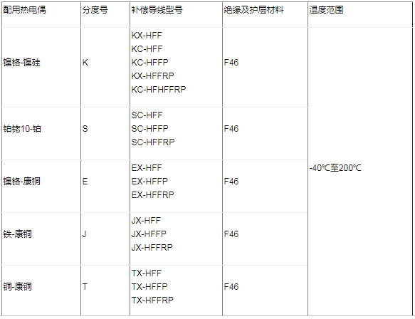 氟塑料耐高溫補償導(dǎo)線按品種劃分為SC、KC、BC、NC、KX、EX、JX和WC3/25、WC5/26等/。其中字母“C”表示補償型“X”表示延伸型。