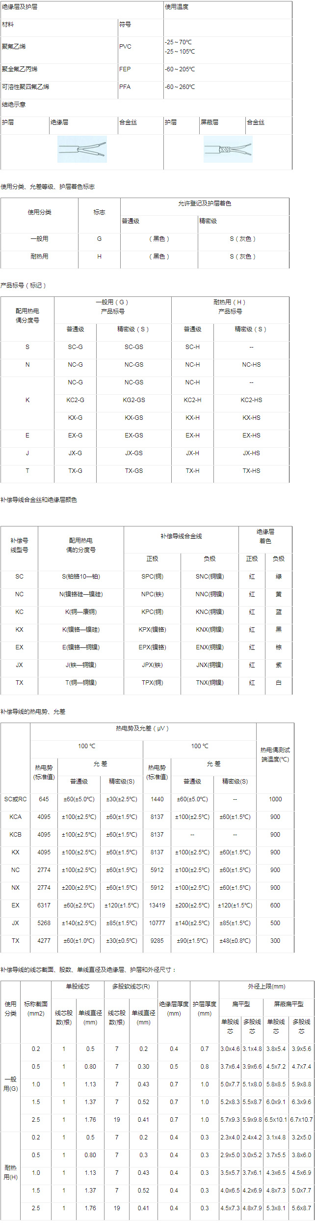 補(bǔ)償導(dǎo)線型號(hào)按產(chǎn)品的品種劃分為SC、KC、KX、EX、JX、TX、NC