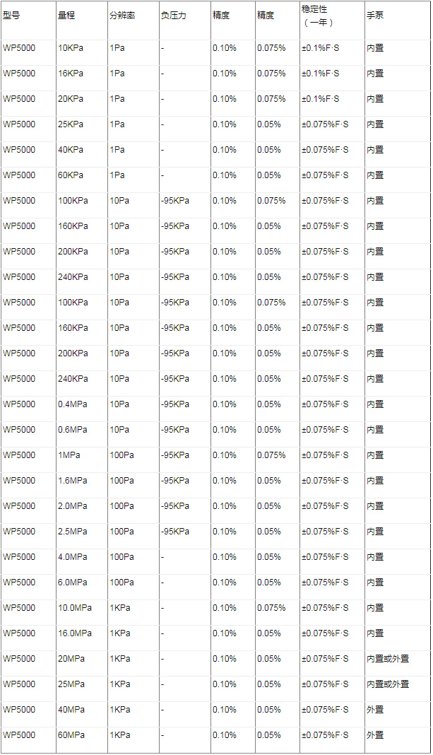 WP5000型智能壓力校驗儀基本準(zhǔn)確度分0.1%和0.05%兩種,是實驗室、工廠、大專院校理想的高檔工具表,并可作為中等精度壓力測試的標(biāo)準(zhǔn)表。
