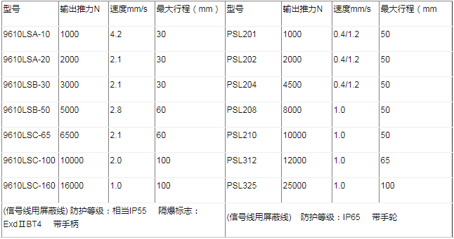 執(zhí)行機構(gòu)主要技術(shù)參數(shù)